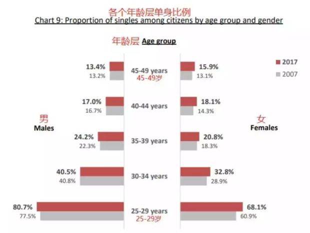 新加坡发布2018年人口简报,单身太多、生育率太低、老龄化问题越来越严重……真是再次狠狠地扎了政府的心!下面让我们来看看具体情况。新加坡各年龄段的单身人数,对比十年前都有所增加。特别是25岁到29岁的年轻人是重灾区!这群人当中,80.7%的男子单身,而68.1%的女子单身。