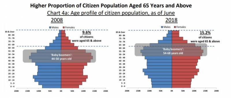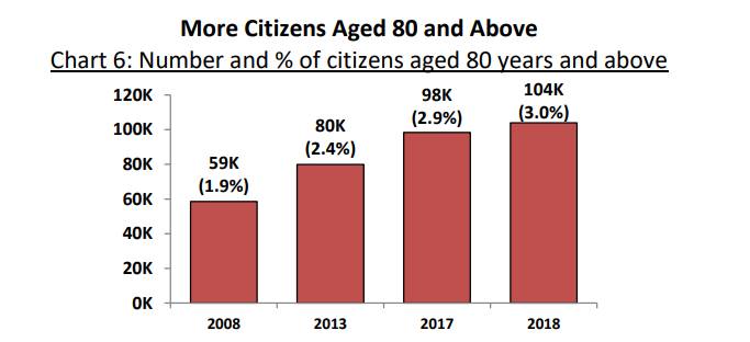 少生了811个宝宝,新加坡也是高度重视,可见宝宝多金贵啊。随着生育率不断降低,老年人越来越长寿,65岁以上的老年人不断增加。新加坡老龄化的问题变得更加严峻了。过去一年,65岁以上的老年人从2017年的14.4%增加到了今年的15.2%。随着生活水平提高,医疗设施越来越发达,80岁以上的老人越来越多。