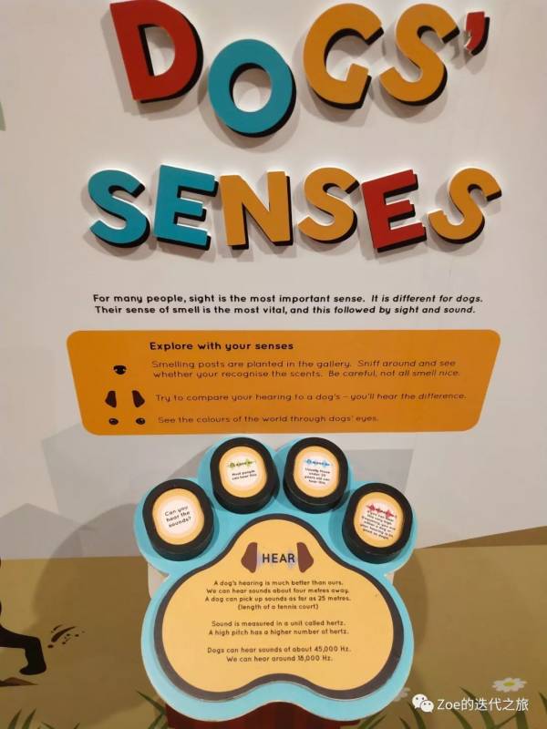 今年是狗年,集邮馆专门布置了狗狗主题的展馆。令我印象最深的就是关于狗狗的听觉敏锐度:几个按钮分别是不同分贝的声音,测测你的耳朵灵敏度,是否和狗狗一样敏锐呢?
