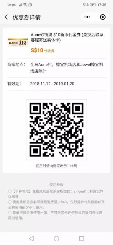 具体的使用条款和日期请参照实体券,最终解释权归A-One Claypot House一品阁 新加坡所有。