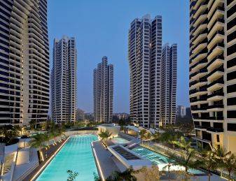 D'Leedon 是新加坡最大的住宅开发项目之一。它位于新加坡10 区的中心,靠近各种商业设施,包括七座住宅大楼,十二座半独立式别墅以及带娱乐设施的综合景观区。为了控制一天中特定时间段的强烈日光,并能最大限度的观看整个新加坡的城市景观,设计师对建筑物的方向和位置进行了优化。