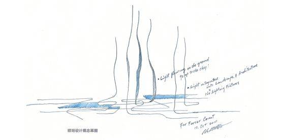 为了优化公共空间,建筑在接近地面时向内渐缩。根据每层住宅单元的数量,高层建筑被分为不同的“花瓣”,使公寓丰富多彩。建筑形式是流动型的,人们会看到绵长而曲折的线条溢出融入到景观中。景观本身是各种软硬元素的结合,创造出丰富多彩的、动态的形状、纹理和形式,所有这些特色都对照明方案产生了重大影响。