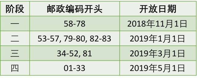 那些居住在以58至78号开头的邮政编码的家庭,将从11月1日起可以开始做出选择。2019年1月1日便轮到以53至57号,79至80号,以及82至83号。2019年5月1日则轮到01至33号。
