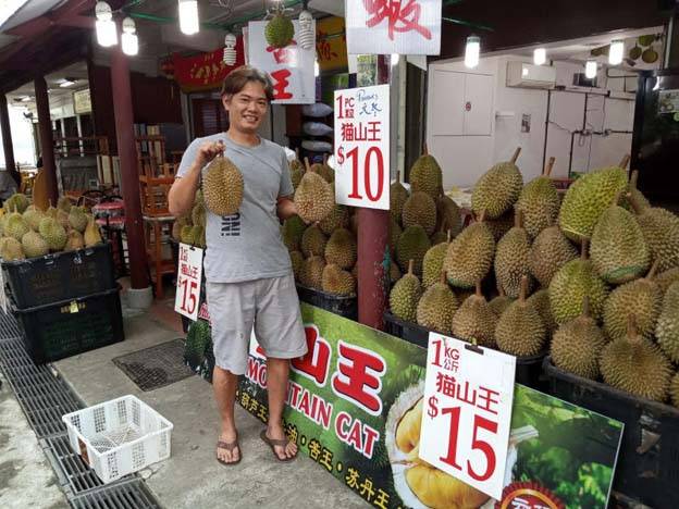在新马两地都有榴梿摊的King Fruits榴梿商郑健超(37岁)前天把顶级的黑金降到一公斤18元,还推出一个猫山王10元(重约一公斤)的促销。