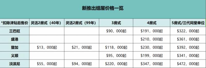 当然万事通深知大家最关心啥,那必须是价格嘛!不得不说,新加坡的组屋价格真的是太良心了~这次推出的组屋项目2房式的只要2万1000新元起,40年房契的甚至只要1万3000新元起。