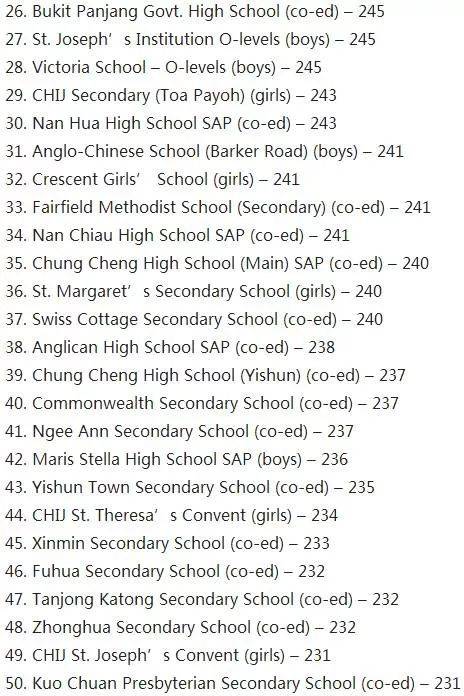 广告新加坡政府中学前100位(按照2017年的录取分数排名,不包括一些有附属小学的中学),以下数据仅供参考,在选择学校时,还是要根据具体情况为孩子择校: