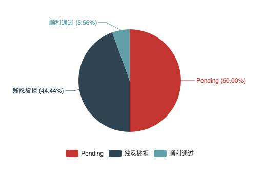 根据调查结果显示,有5.56%的同学顺利申请到了PR,还有一半的同学目前处于Pending的状态。