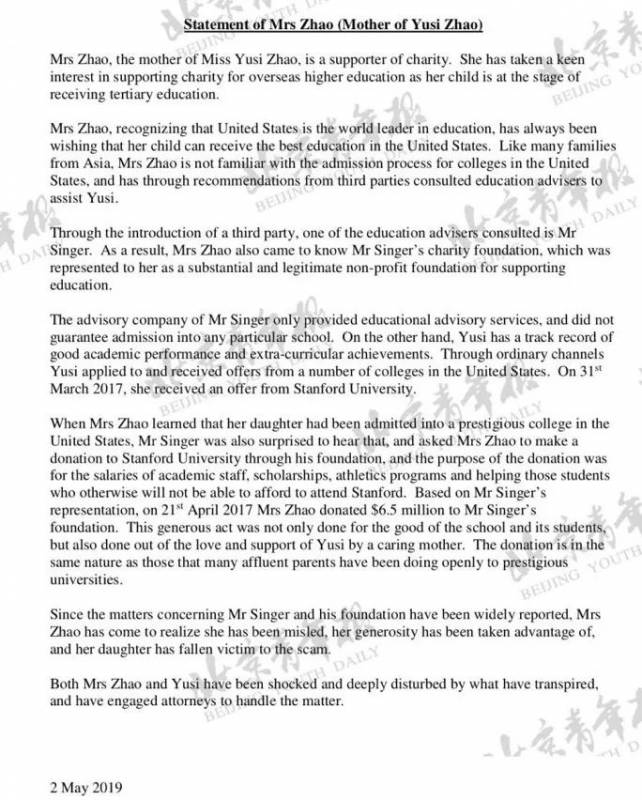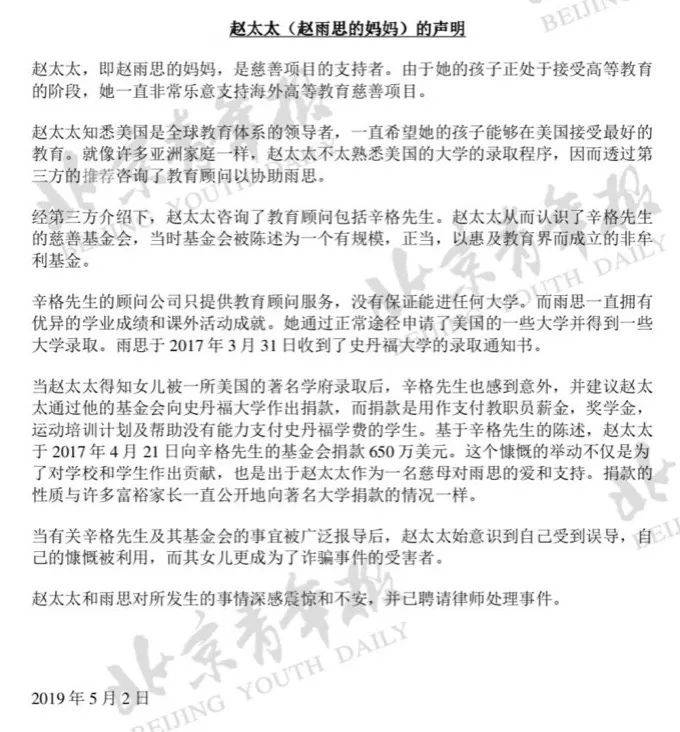 获得一份赵雨思母亲的声明