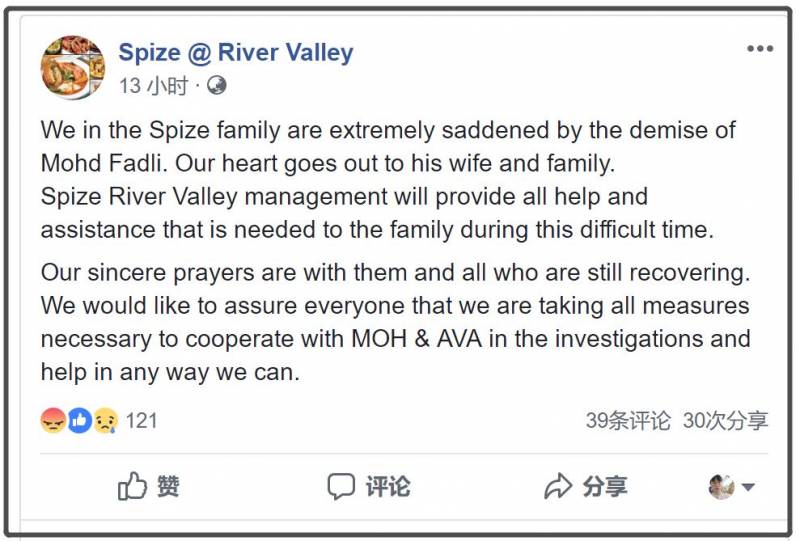 (我们对Fadli Salleh的去世深表哀悼,并将在这困难时期,为其家人提供援助。我们也真诚地为其他人祷告。我们向大家保证,将会配合卫生部和农粮局进行调查,并尽我们所能帮助大家。)