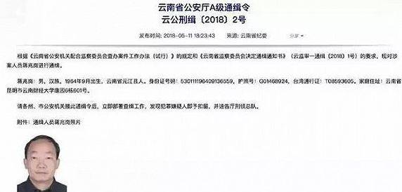 广告今年5月,根据云南省监察委员会决定,云南省公安厅发布A级通缉令,对蒋兆岗进行通缉。目前,他已被公安机关抓回归案,成为中国首例应省级监察委员会要求公安机关发出的通缉。