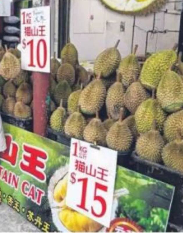 而在去年7月至8月间,猫山王的价格曾一度暴涨。从平时的16新元一公斤起,暴涨到突破了50新元!原因是中国游客来新加坡旅游往往第一件事就是吃榴梿去,尤其是最受欢迎的猫山王榴梿。因此榴梿价格也跟着水涨船高了~