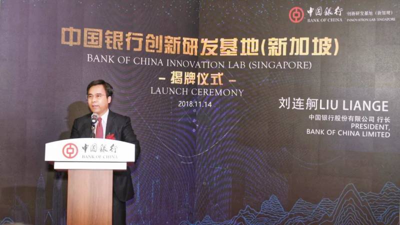 11月14日,中国银行全球首家创新研发基地在新加坡成功揭牌并同期发布手机银行国际版。中国银行刘连舸行长出席揭牌仪式并发表致辞。