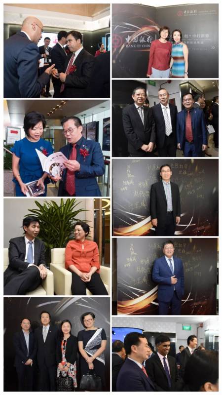 揭牌仪式现场。嘉宾从左至右分别为:新加坡何伟山议员、颜添宝议员、新加坡工商联合总会张松声主席、中国驻新加坡大使馆锺曼英公使衔参赞,新加坡通讯及新闻部兼文化、社区及青年部沈颖高级政务部长,中国银行刘连舸行长、新加坡金融管理局黄耀龙助理行长、新加坡洪维能议员、新加坡报业控股陈康威副首席执行官、中国银行新加坡分行邱智坤行长。