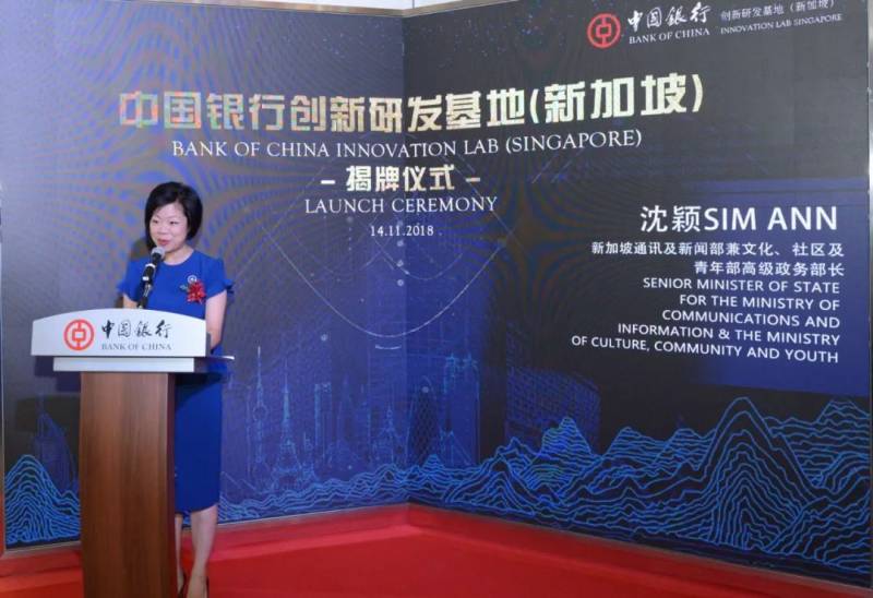 2018年11月14日,中国银行全球首家创新研发基地在新加坡正式揭牌成立。此举是中国银行在发展金融科技领域迈出的重要一步,也是中国银行贯彻落实“建设新时代全球一流银行”战略的重要措施,体现了中国银行对新加坡金融中心业务持续投入、加快发展的决心。新加坡通讯及新闻部兼文化、社区及青年部沈颖高级政务部长,中国银行刘连舸行长出席揭牌仪式并发表致辞。中国驻新加坡大使馆锺曼英公使衔参赞,新加坡金融管理局黄耀龙助理行长,新加坡工商联合总会张松声主席,洪维能议员,颜添宝议员,何伟山议员,新加坡报业控股陈康威副首席执行官,以及来自政府、监管机构的官员,各大商协会会长,各跨国金融机构、跨国企业负责人和客户代表出席揭牌仪式。