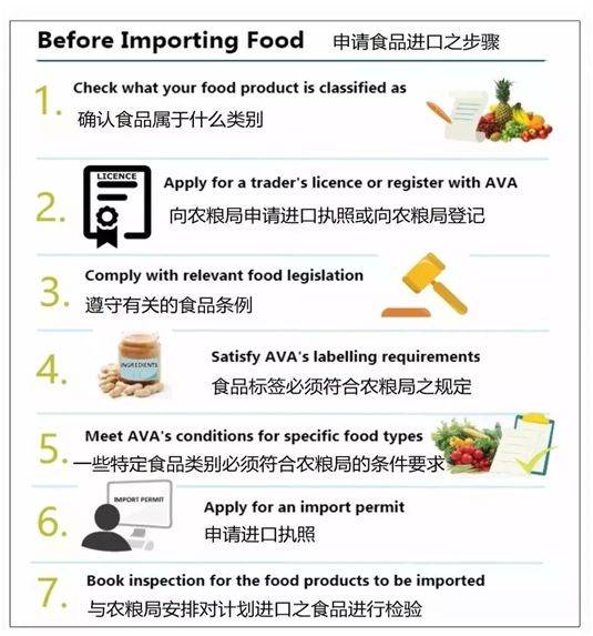在很多情况下,进口食品还没有“登机”或“装船”前,农粮与兽医局就已经开始检验、审核工作,确保食品生产条件符合新加坡的安全标准、进口商提交完备的资料证明食品的安全性。