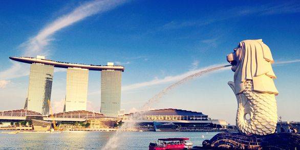 新加坡的标志性景点之一,代表新加坡形象的鱼尾狮吐出强劲有力的水柱。
