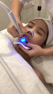 其实不会痛,只是我有一点敏感,所以能感觉它在我脸上拍打的速度和深度。除此以外,它有一定的声音,而且还比较大,美容师很贴心为我提前准备好耳塞。最后把脸上的精华用手涂均匀,敷一个美白补水面膜,顺便照个美白灯……这就算是做完了。