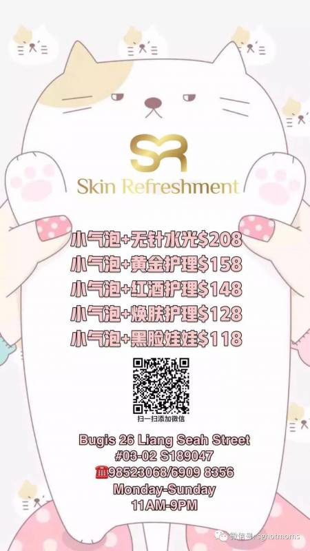 即日起,在留言区留言告诉我们“狮城辣妈我要做脸”,点击右下角“在看“并留言本文,留言点赞数最高的3位,将获得由Skin Refreshment提供的价值188新币/次的小气泡净肤系列一次。不用怀疑,就是这么任性,获奖者将在2019年5月6日10am(星期一)公布。除此之后,即日起至5月20日,去现场体验,还能使用以下优惠价格,真的是超级划算哦!反正不试白不试,动动手指,点赞分享,祝大家好运咯!