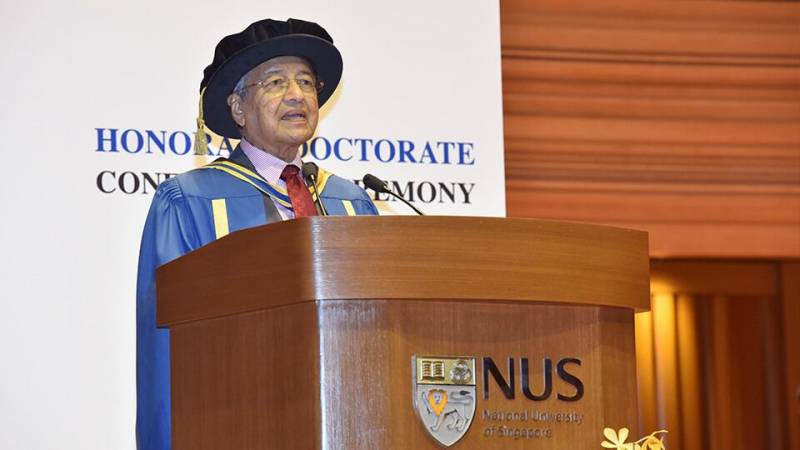 11月13日,马来西亚总理马哈迪在新加坡国立大学名誉博士学位授予仪式上发表演讲