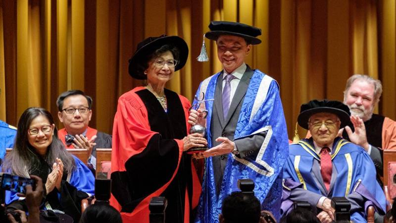 同时,马哈迪总理夫人西蒂哈斯玛也被授予了新加坡国立大学卓越校友服务奖(Distinguished Alumni Service Award),以表彰她作为马来西亚女性医生的优秀榜样对马来西亚公共卫生事业的长期贡献。
