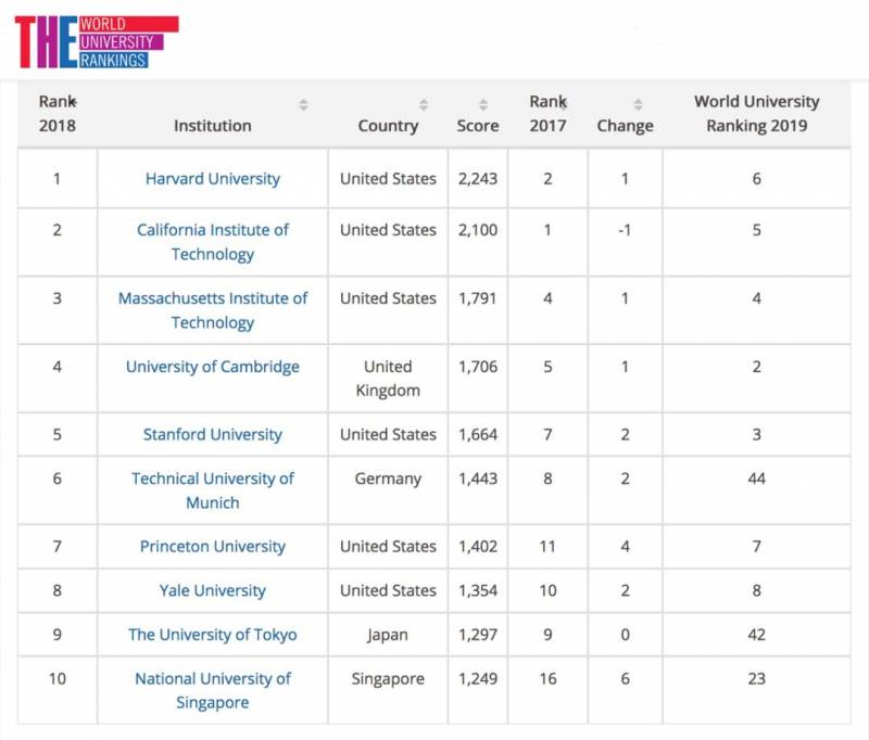 泰晤士高等教育排名发布的世界大学就业力排名,共有全球150所大学入榜。排名数据根据今年5月至9月开展的针对全球22个国家约7,000名来自主要行业的招聘人员和国际经理的调查。进入排名前十的大学其中美国有6所,欧洲2所,亚洲2所。