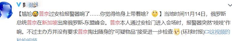 话说,这可是普京第一次来新加坡,参加俄罗斯—东盟峰会了。当普京就要通过安检门进入会场时,吱,吱,吱......报警器居然响了。而普京也丝毫没有理会这个突然叫起来的门,继续洒脱地大步向前走。
