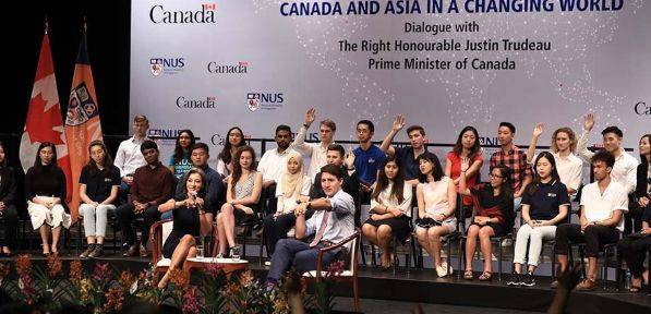 (特鲁多和NUS的学生们交流)