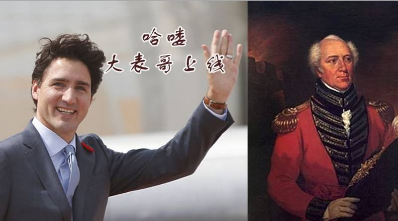 (特鲁多与祖上首任“新加坡驻扎官”威廉·法夸尔)