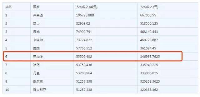 该醒醒啦!现实总是残酷,生活没有对比就没有伤害!没错,新加坡最新平均收入报告出炉了!希望看到这份报告后的你,依旧能够喝着茶,漏出惬意的微笑!是时候来检查你有没有托后腿的时刻了……想必新加坡年收入在世界范围内排名前列每位小伙伴都是早有耳闻的,新加坡人均收入世界排名第6!