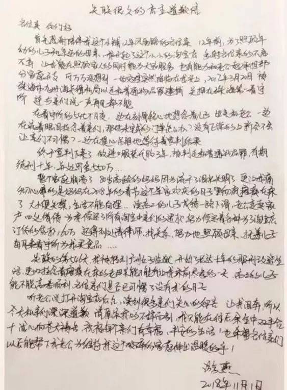 广告燕子服刑后,其淘宝店首页贴出了手写的道歉信。字字句句都在诠释,什么叫“悔不当初”。