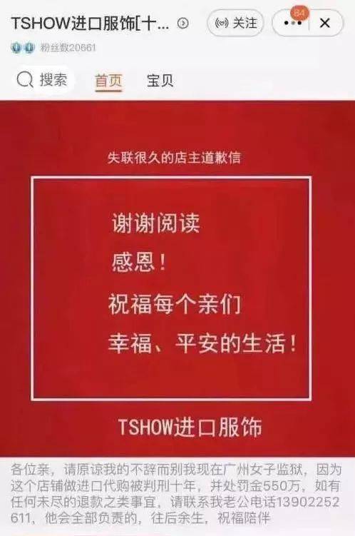 近日,广东一淘宝代购店主的道歉信截图在网络热传,店主燕子(化名)自称因做进口代购被判走私,获刑十年,现正在广州女子监狱服刑。