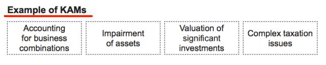 - 经审计员专业判断后得出的对本期财务报表有重大审计意义的事项。换句话说,这 些是涉及复杂审计工作和管理层重大判断的财务报表领域。