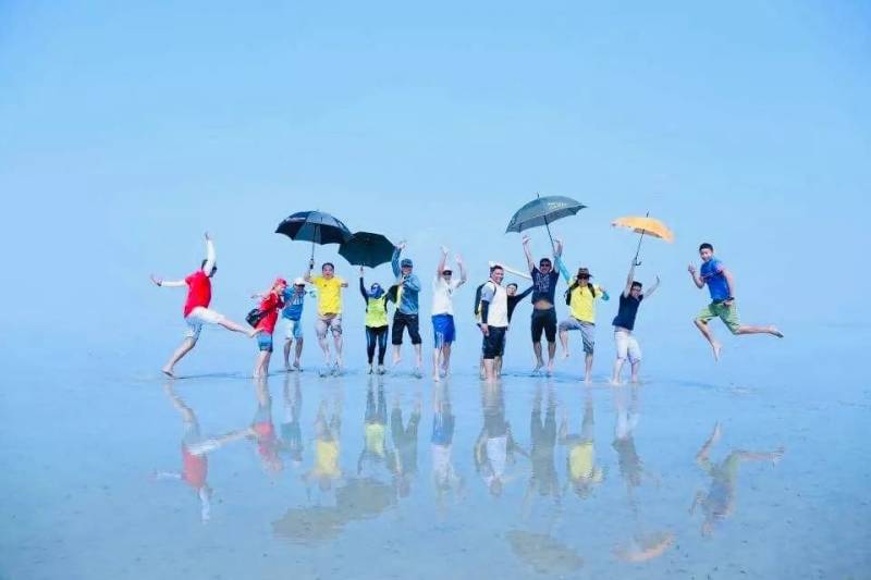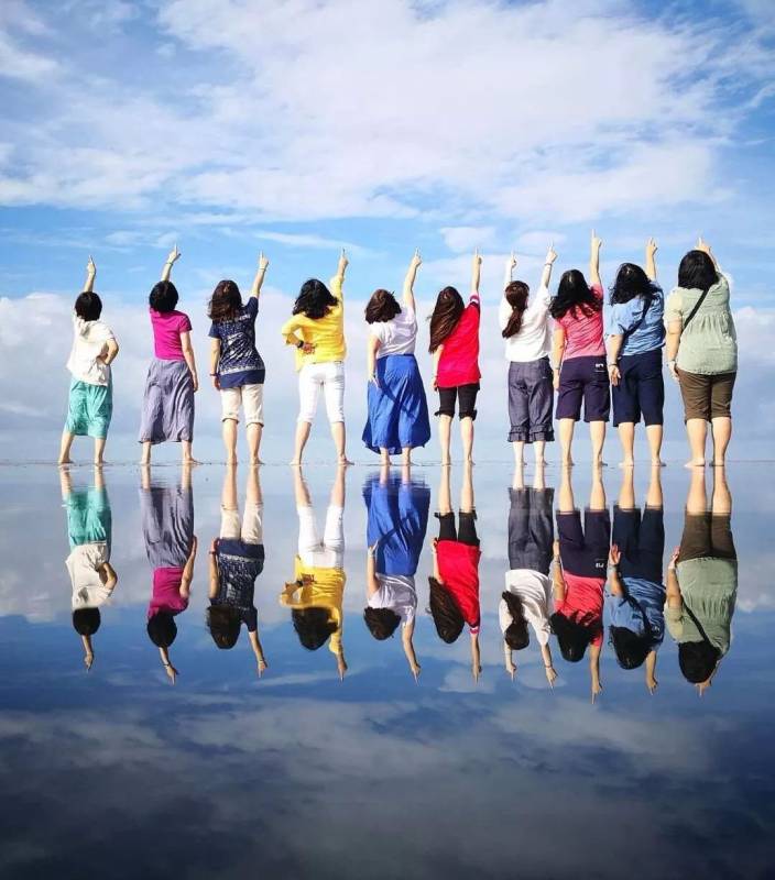 08: 00 Am - 11: 00 Am 抵达目的地传说中的天空之镜,等水退至0.5米,大约是脚踝的深度时,旅客们下船在海面上进行各种活动 。浅滩在艳阳照射下尤如一面会变魔术的镜子 ,可以清楚反射天空倒影,您绝对能拍摄珍贵的作品。要拍出天空之镜的效果,就要注意浅滩的水深度,太浅的话其实会看到黄泥色的沙滩 ,建议再往远一点的地方走去,让水深达到脚踝,拍出来的效果会比较好。