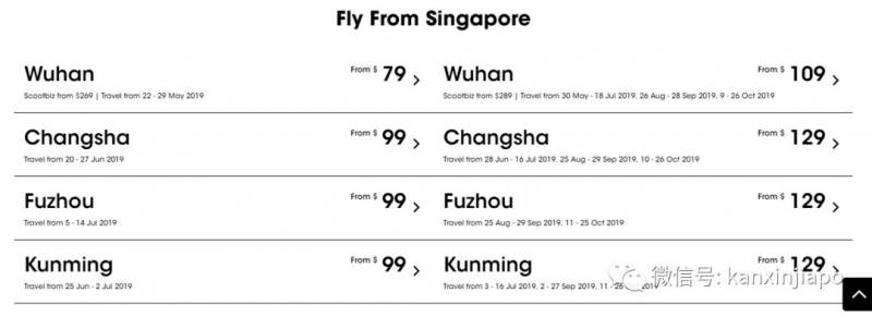 简单粗暴,新加坡飞武汉、长沙、福州、昆明等地,只需要$79-129。