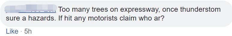 (高速公路上有那么多树,暴雨天肯定是个隐患,如果砸到摩托司机,谁该责任?)