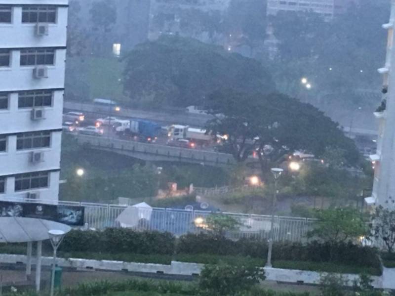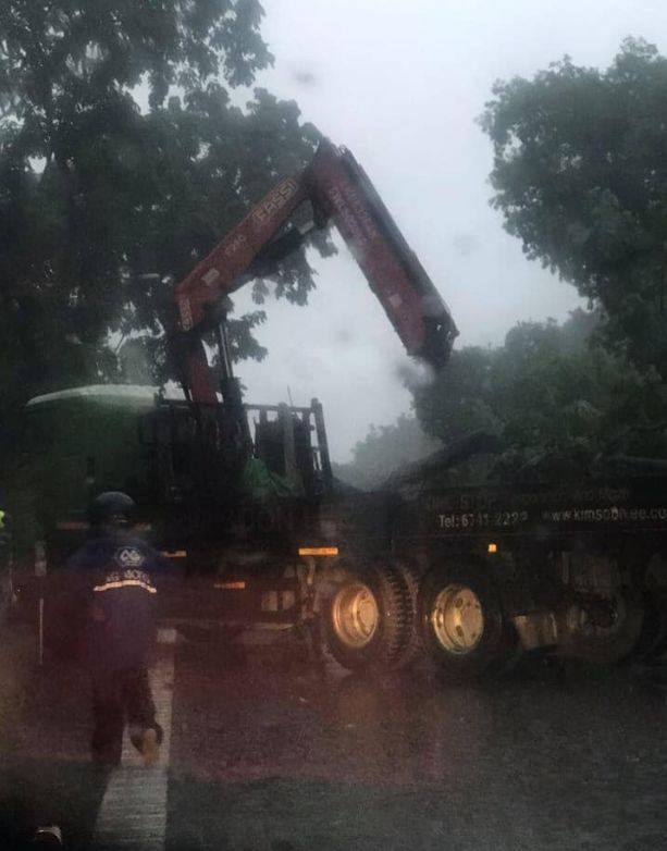 今天(11月17日)早上,受暴雨影响,新加坡多棵大树倒下,造成交通大面积堵塞。