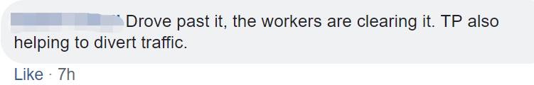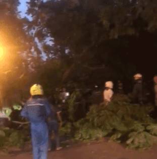 经过该路段的网友也说,现场除了有工人在移除树木,还有交警在指挥交通。