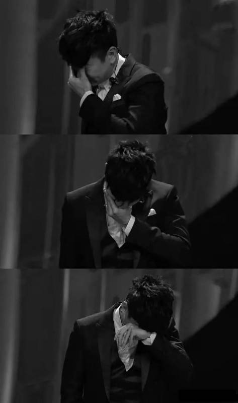 在结束后,他再也控制不了自己,在舞台上背过身低着头,以手掩面,在观众面前哭出来……