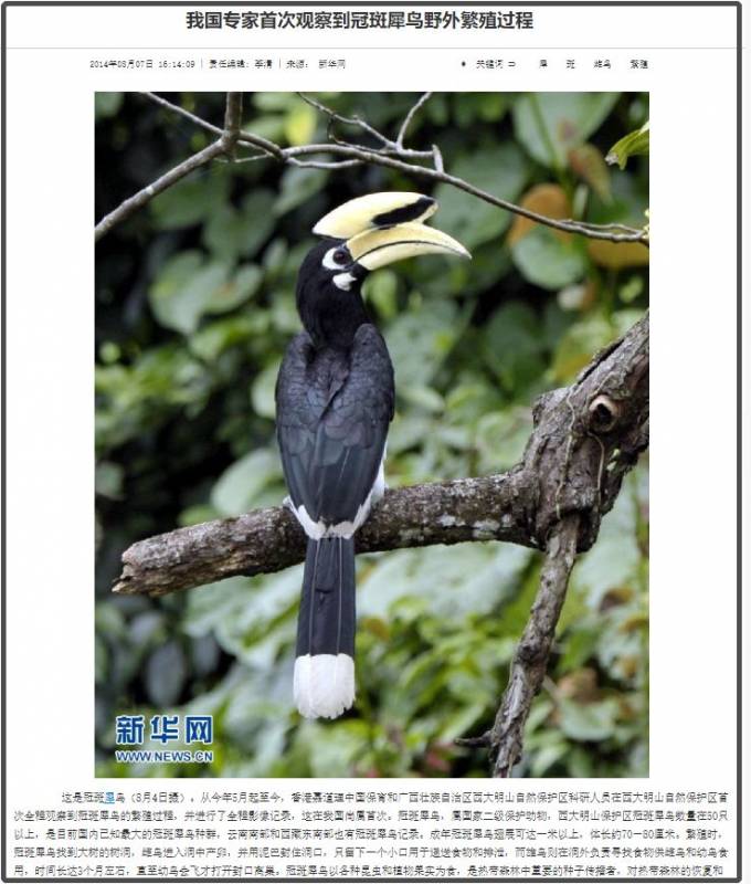 它的学名叫冠斑犀鸟,在中国,可是国家二级保护动物。目前属于《世界自然保护联盟濒危物种红色名录》(IUCN)中的“极危”级别动物。在新加坡,它也是飞禽公园的代言人。
