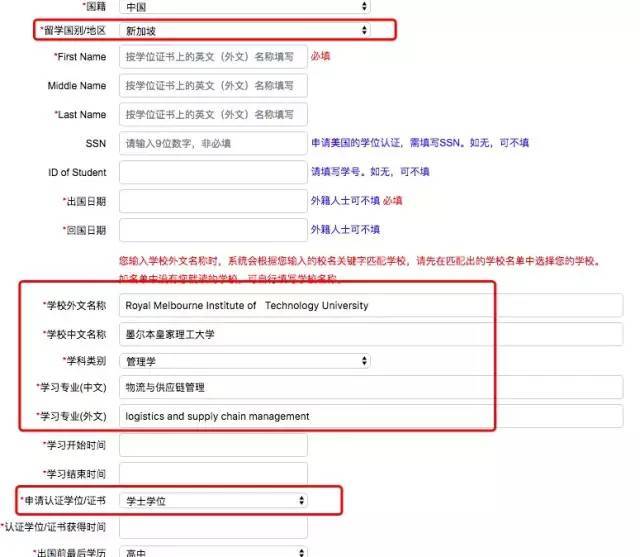这边留学国别/地区,统一写:新加坡(记住了是写新加坡,可不是文凭颁发所在国家哦)