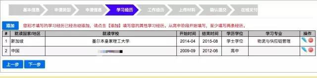 填写学历信息,注意请将你之前在新加坡学校读的大专 高级大专等成绩和信息都填入