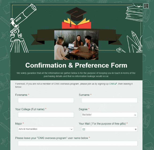 1. 请先在(http://cn.mikecrm.com/jMcECKL)填写您的基本信息及需求,并务必提供您的海外知网用户名(可注册)并提交,以便为您充值;