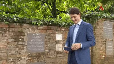 在工作人员的带领下,他很快找到了六代前祖母的墓碑!激动的特鲁多,在这里,尝试了人生首次自拍!他还把这张和祖辈的“合照”,传给了自己的家人和孩子们。