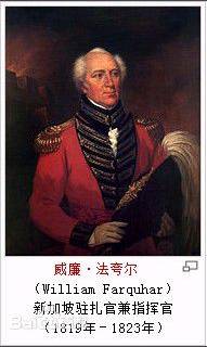1819年2月,东印度公司旗下明古鲁总督史丹福·莱佛士爵士率先为英国在新加坡开通商埠,并任命马六甲驻扎官威廉·法夸尔中校(Lieutenant-Colonel William Farquhar)为首任新加坡驻扎官兼指挥官,统领商埠政务,为新加坡的殖民地史揭开序幕。