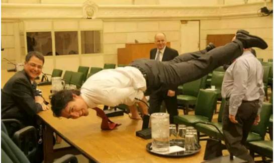 特鲁多是瑜伽达人,可以在办公桌上做孔雀式。