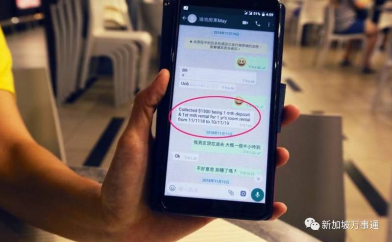 电话那头,房东表示750新元的价格,是租满一年才有的价格,许先生想到以后会在新加坡生活很久,于是同意租一年。接着房东表示如果要入住,需要先支付一个月房租和押金共1500新元。许先生觉得合情合理,于是很快就完成转账。