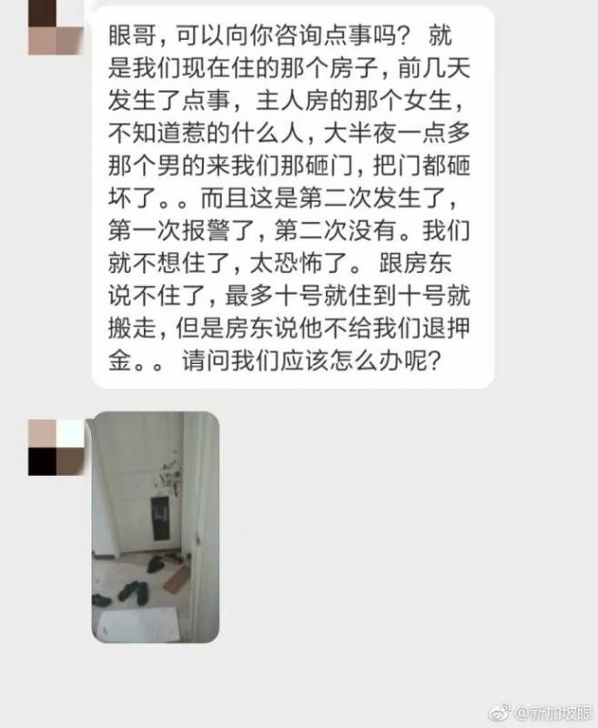 网友向新加坡眼求助,说有人大晚上到他们的住处砸门,因为害怕现在不想继续在那住下去了,但是房东不退押金,该怎么办?