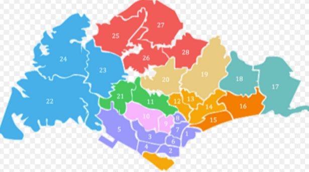 请参考下图,新加坡总共细分为28个区域,D1-28邮区,方便大家了解,可以分为三个大的区域。