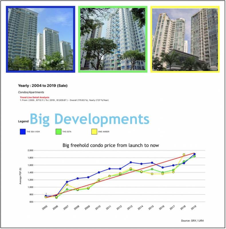 很多数据研究发现,新加坡私人公寓从开盘预售到3-4年建好后交房,价格一般会有很大的增长;反而交房后成为二手房,价格增长慢慢停滞。以下列两个项目为例: