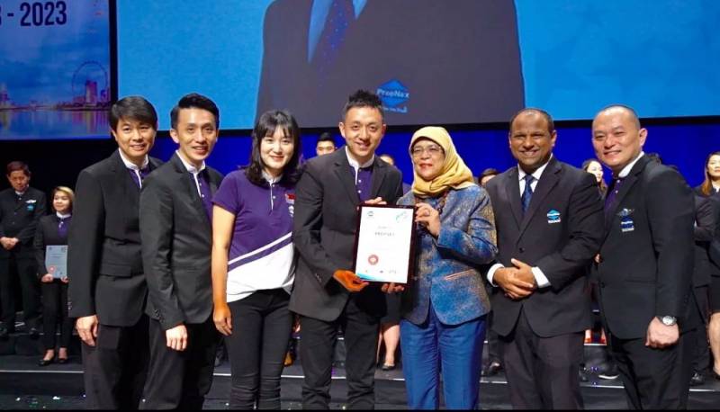 接受新加坡总统哈莉玛颁奖 2018年8月